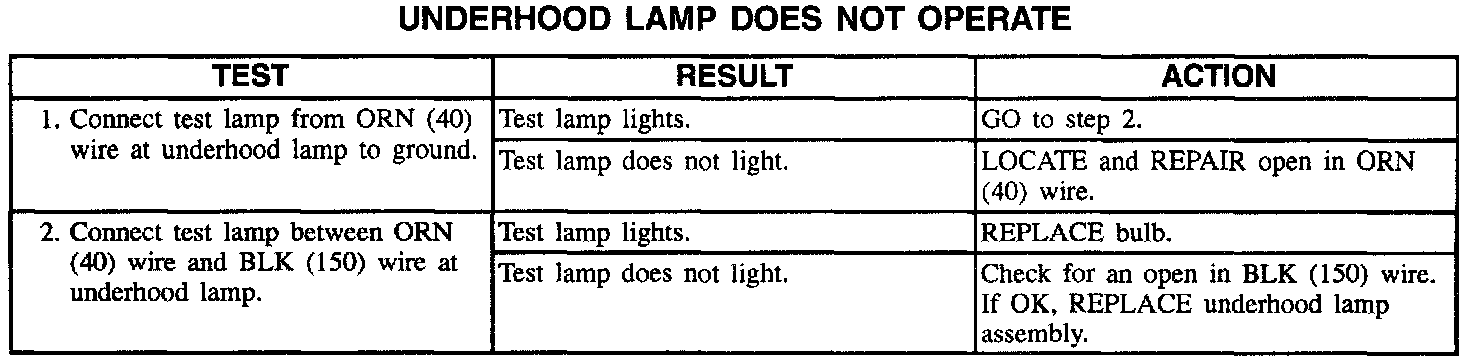 Underhood Lamp Does Not Operate: