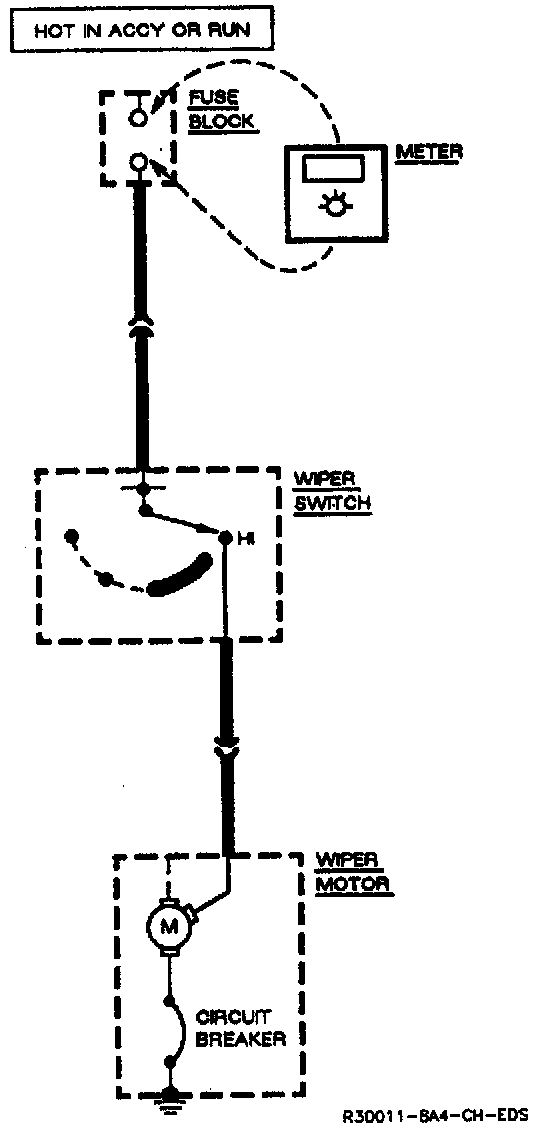 To measure current in a Windshield Wiper Motor, for instance, the meter should be connected across the fuse terminals, after removing the fuse. The meter can be inserted in any circuit where a single circuit can be temporarily opened to make the measurement.