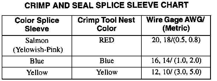 Crimp And Seal Splice Sleeve Chart: