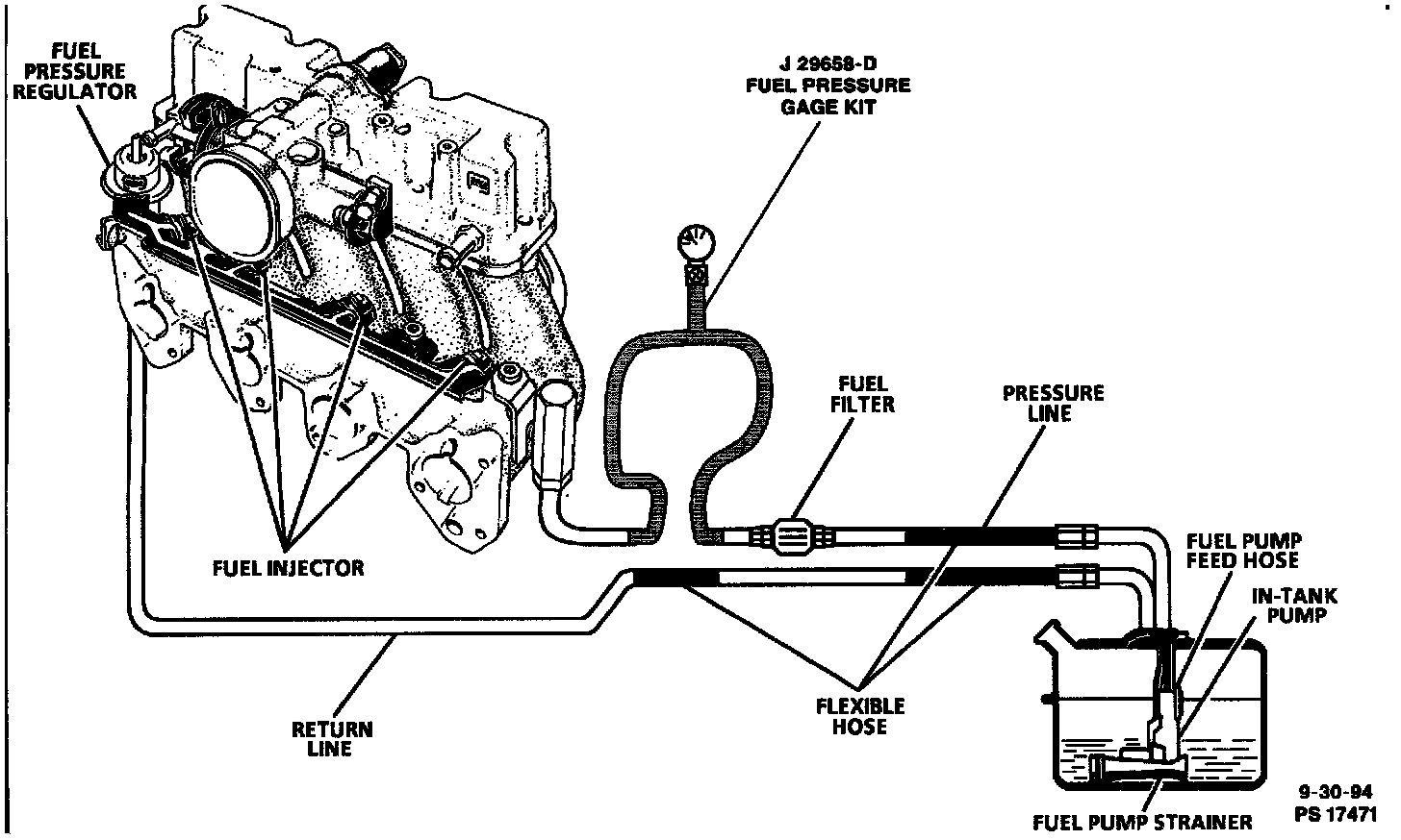 - J 34730-250, Fuel Pressure Adapter.
