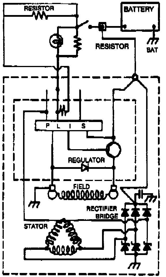 During normal system operation, the indicator lamp, if equipped, will illuminate until the engine is started. If the indicator lamp operates abnormally, or an overcharged or undercharged battery condition exists, the following procedure should be used to diagnose the charging system. Refer to charging circuit wiring diagram, Fig. 2, when diagnosing the system.