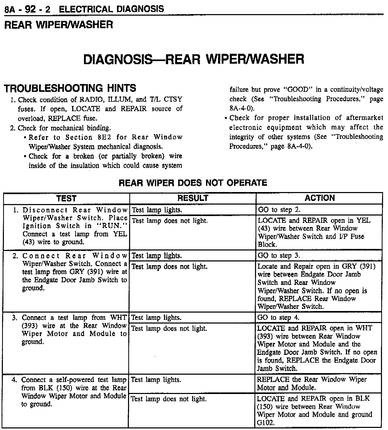Section 8A-92 - Rear Wiper/washer, Diagnosis