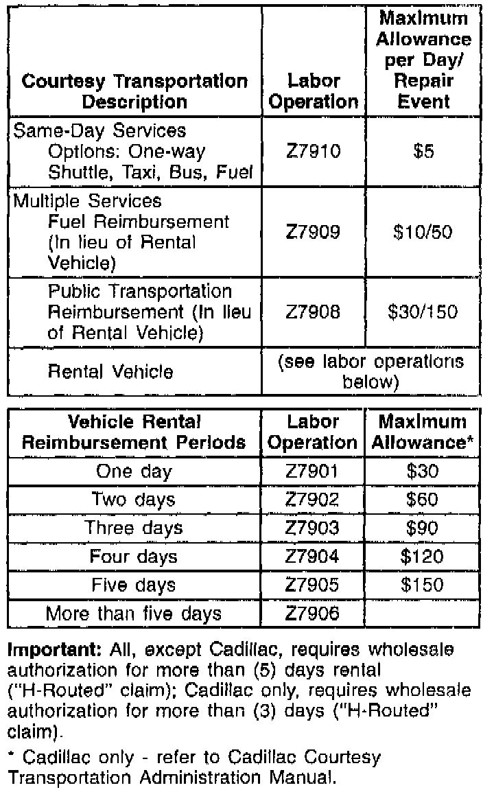 Courtesy Transportation Features, Labor Operation Numbers, and Allowances
