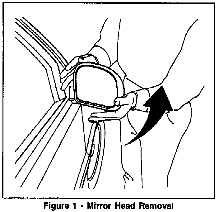 2. Apply firm sharp upward pressure with the hand at the lower outboard corner of the mirror head. This action is necessary to overcome the snap-on lip inside the mirror head.