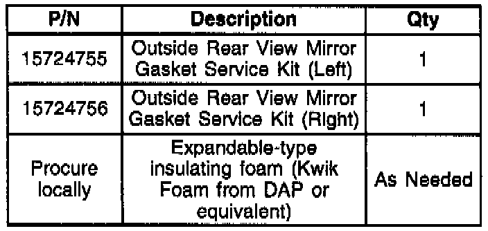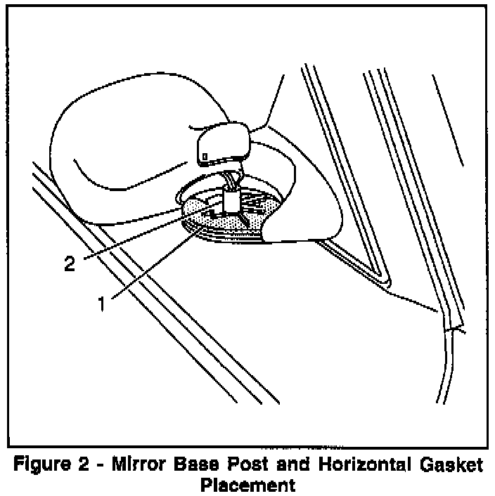 8. Inject an expandable-type insulating foam (Kwik Foam from DAP or equivalent) into the mirror base post so that it is approximately 25% full. When the foam expands, it will prevent a "pop bottle-type" whistling noise. This foam can be procured locally at most major hardware stores or home centers. (Figure 2, Item 2)