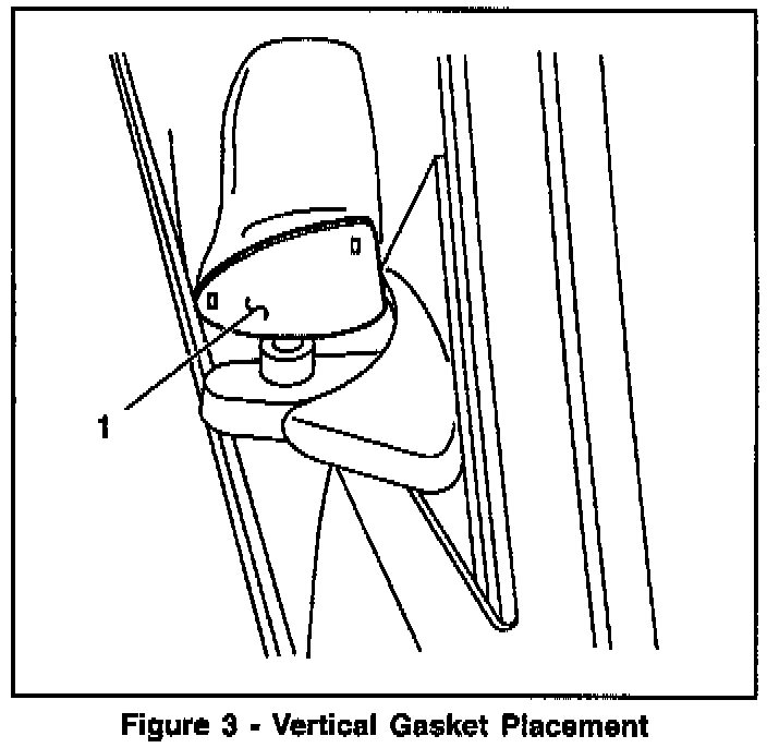 7. Apply one gasket to the vertical surface of the mirror head using the two locator tabs as guides. (Figure 3)