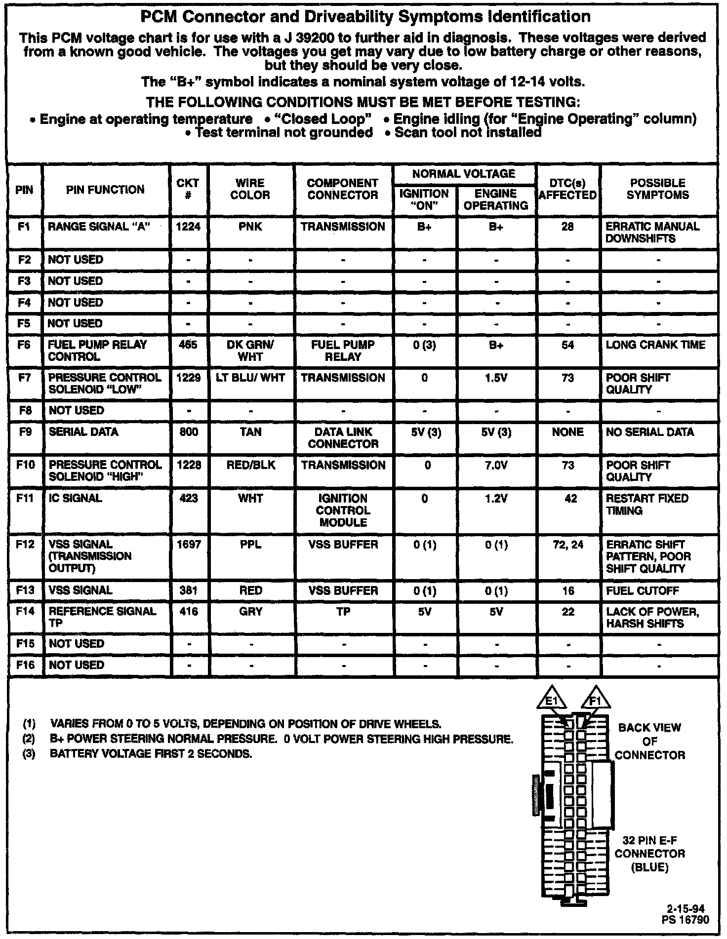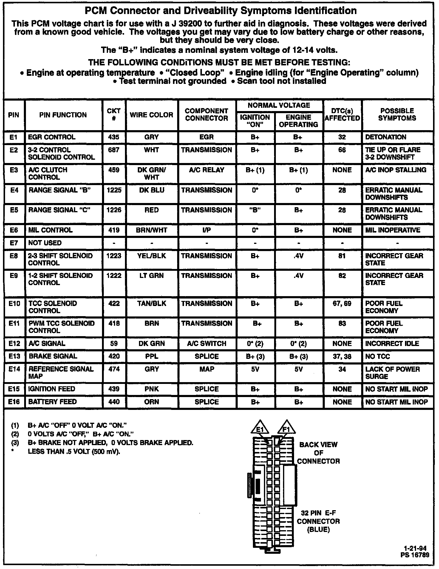 PCM Connector & Driveability Symptoms Identification: