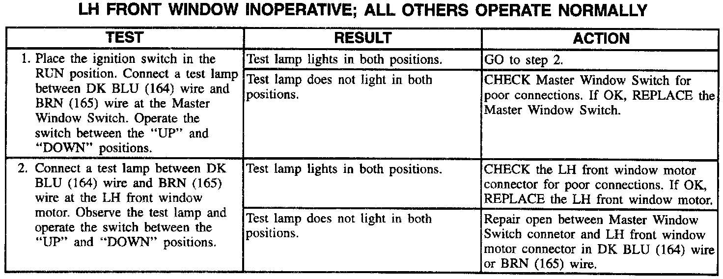 LH Front Window Inoperative, All Others Operate Normally: