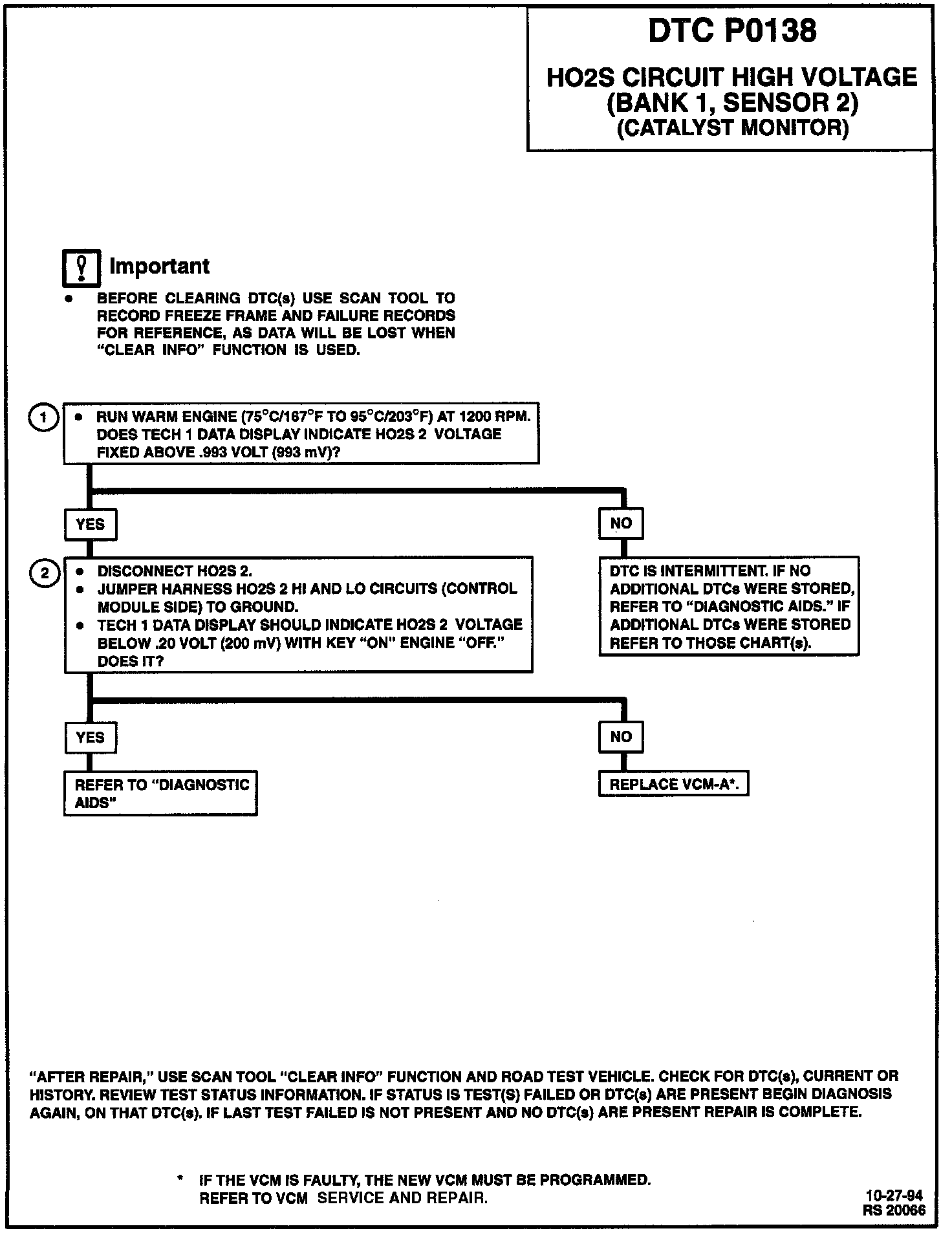 ^ Rich exhaust - If DTC P0131, P0132, or P0134 are present, diagnose these DTC(s) prior to DTC P0138. An overly rich exhaust may load the catalyst causing high HO2S 2 signal voltages.