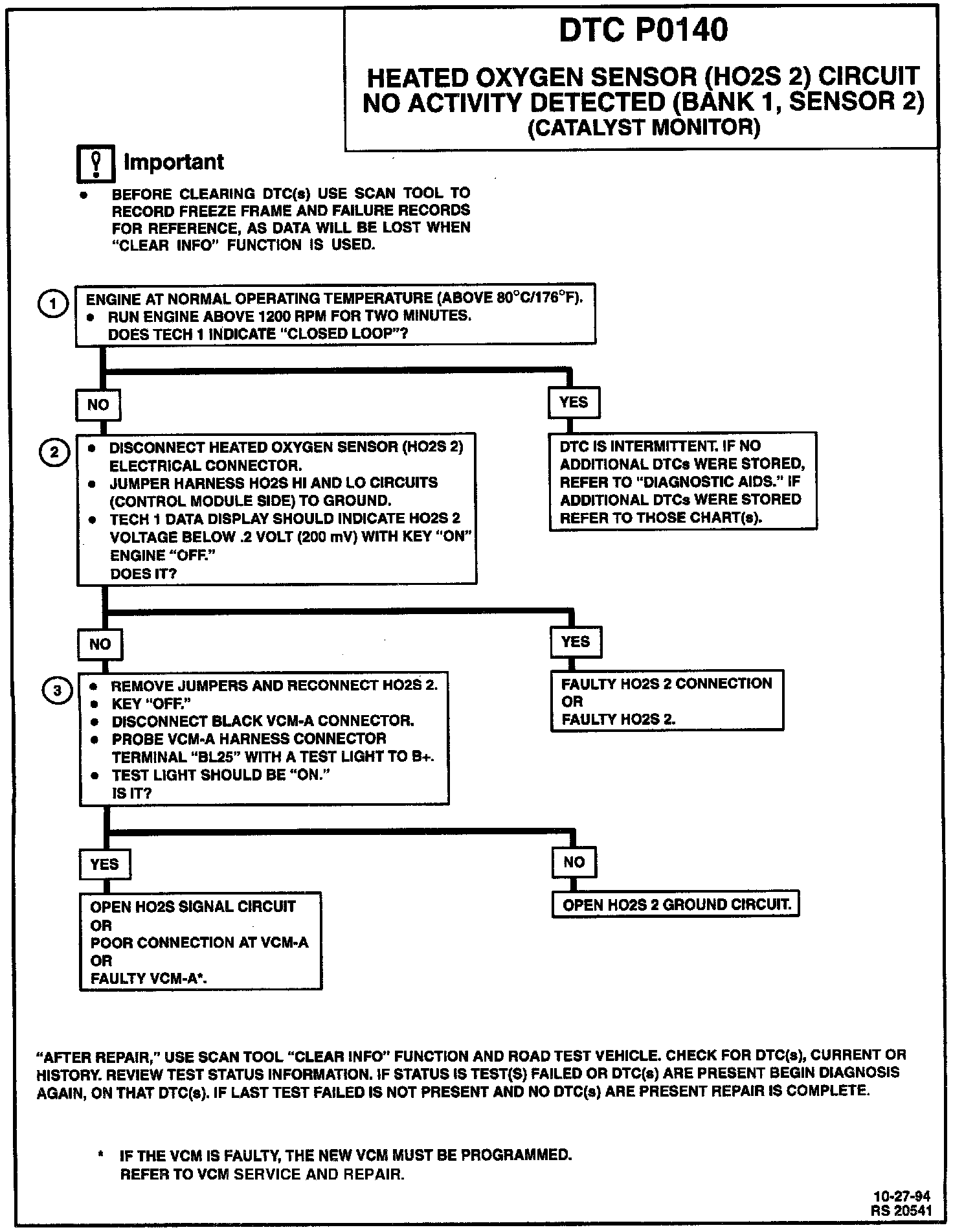 1. If the conditions for setting DTC P0140 exist, the system will not go into "Closed Loop."