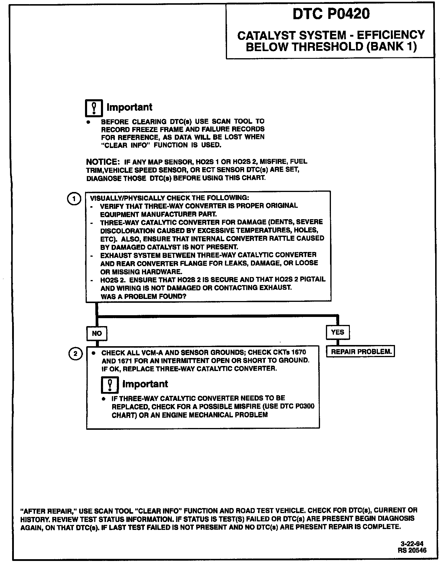 DTC P0420 Catalyst System - Efficiency Below Threshold (Bank 1):