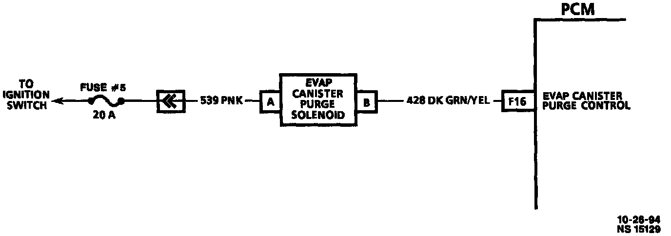 B+ is applied to the EVAP Canister Purge Solenoid when the ignition key is turned "ON." Once the engine coolant has reached normal operating temperature, the control module grounds the EVAP Canister Purge Control circuit. The purge solenoid will open, allowing the fuel vapors from the vapor canister to be directed to the intake manifold.