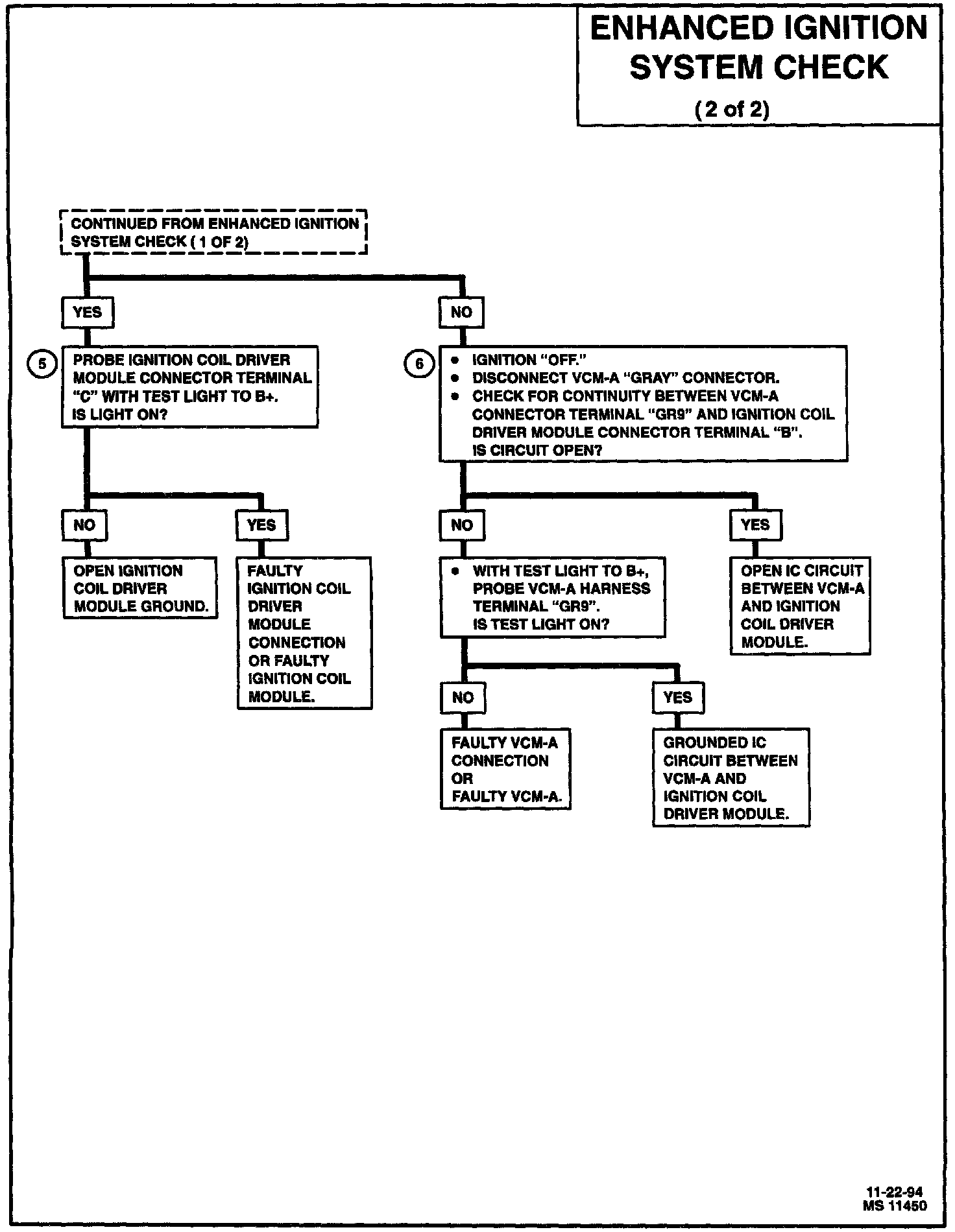 4. This check will begin to determine if the VCM-A is providing a signal to the ignition coil module or not. If the VCM-A is not providing a signal to the ignition coil driver module, the problem exists between the distributor and VCM-A.