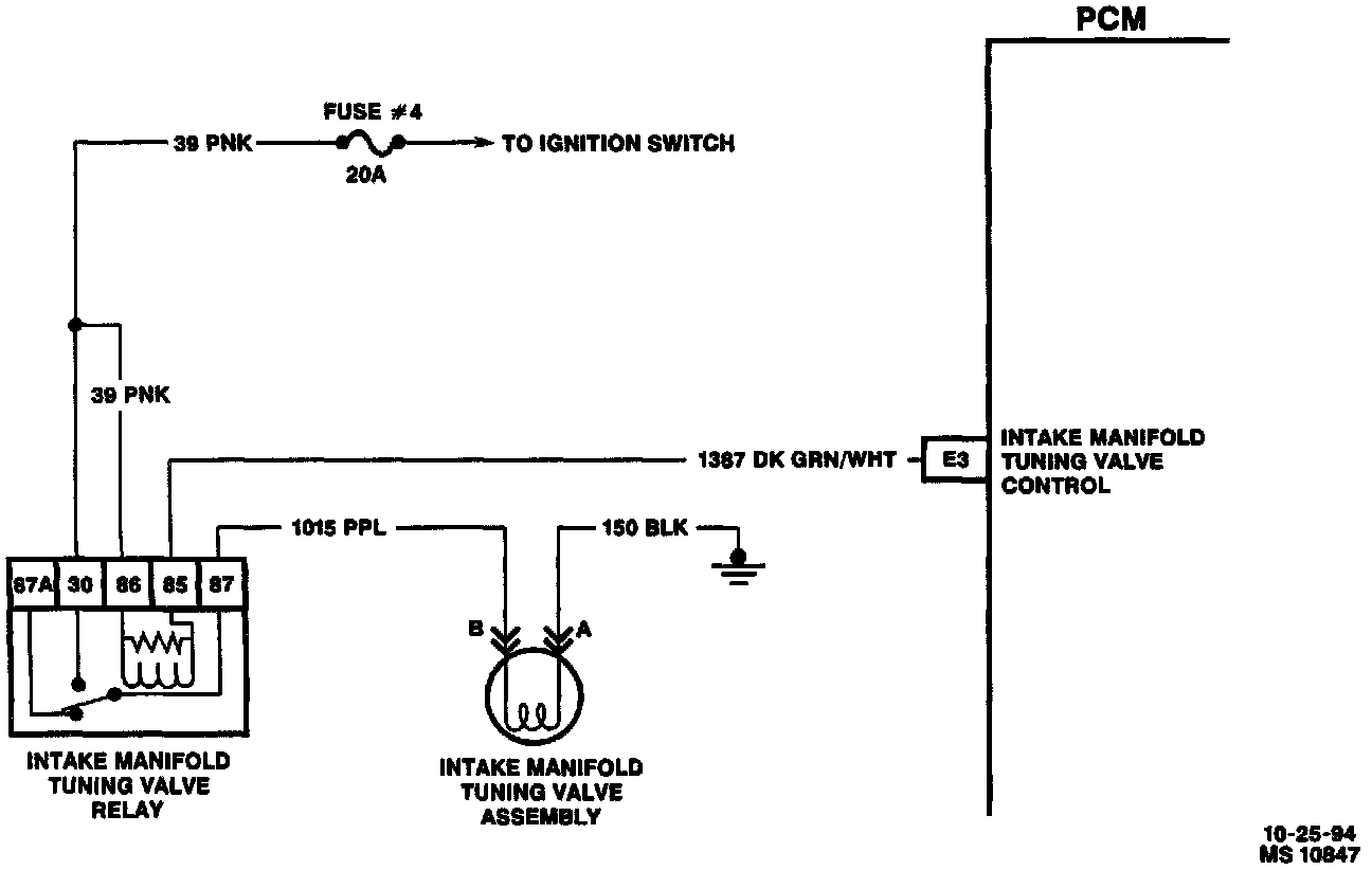The tuning valve relay is powered by ignition voltage and is turned "ON" and "OFF" when the PCM grounds the tuning valve control circuit. When the relay is activated, it applies ignition voltage to the tuning valve.