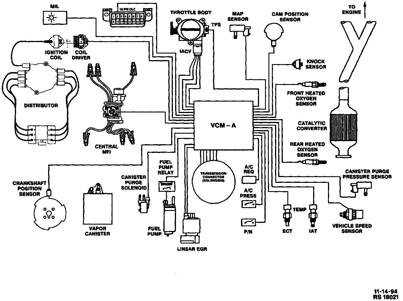 The Vehicle Control Module (VCM-A) will be commonly referred to as a control module. The control module is designed to maintain exhaust emission levels to Federal or California standards, while providing good driveability and fuel efficiency. The control module monitors numerous engine and vehicle functions and controls the following operations: