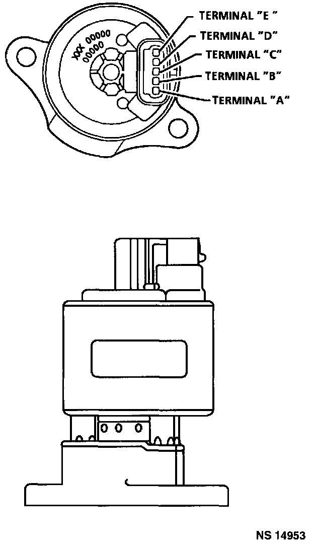 The solenoid (bobbin and coil) assembly is energized by 12 volt current which enters the valve through an electrical connector (terminal "E"), then flows through the solenoid assembly to the control module and creates an electromagnetic field. This field causes the armature assembly to be pulled upward, lifting the pintle a variable amount off the base.