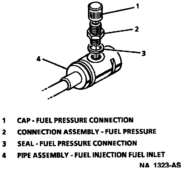 3. Fuel pressure connection and seal. Discard seal.