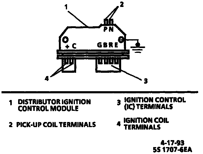 The distributor ignition system has a distributor module with four terminals for the IC system that are connected by the control module.
