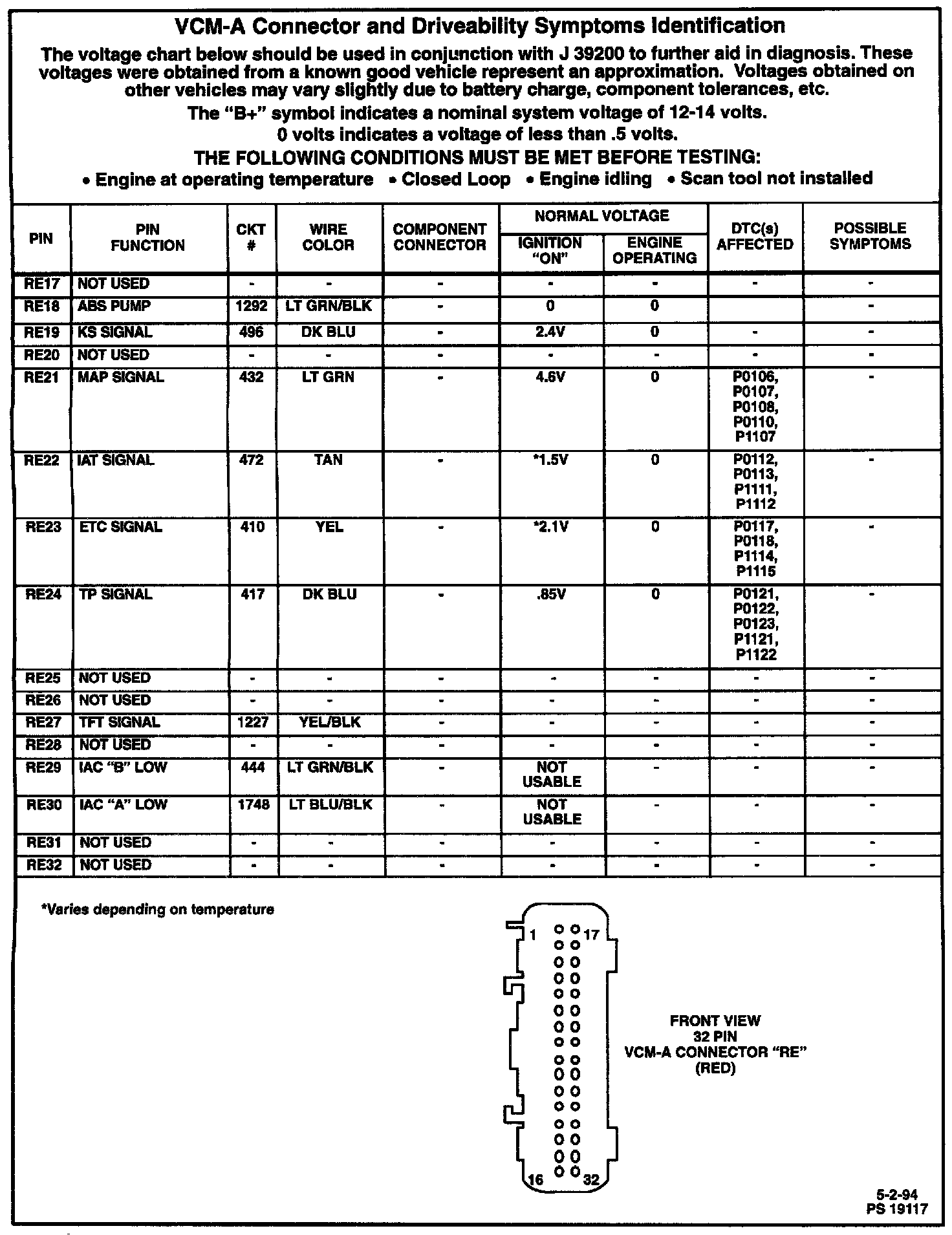 VCM-A Pinout/Terminal ID Charts