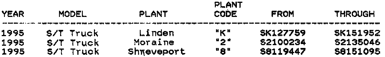 Involved are certain 1995 Chevrolet S/T Pickup and Utility trucks equipped with air conditioning and 4.3L engines, and built within the VIN breakpoints as shown.