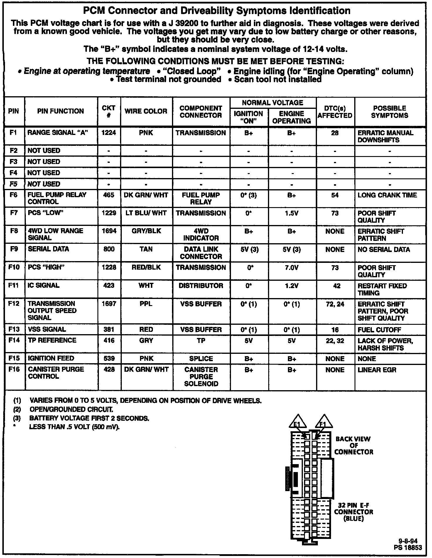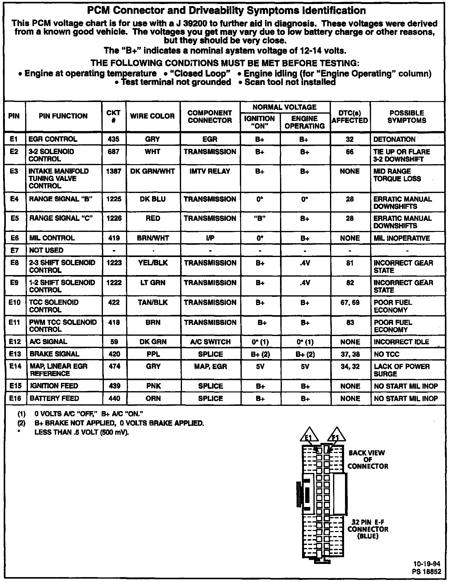 PCM Connector & Driveability Symptoms Identification:
