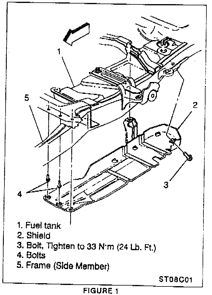 3. Remove the steel shields (RPO ZM5) from around the fuel tank, if equipped (Figure 1).
