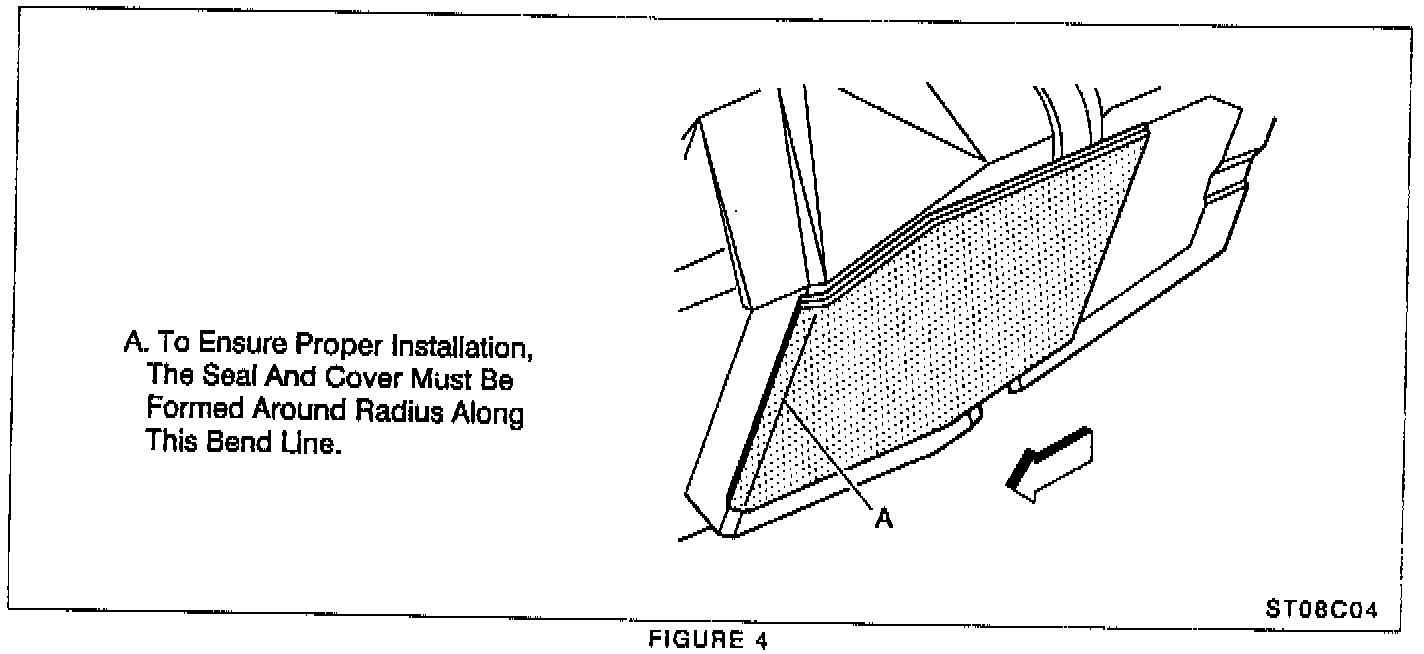 11. Align adhesive side of the cover along the same radius bend line on top of the seal (Figure 4) that was applied in step 9 above. Remove the remaining protective paper from the cover and apply the cover firmly over top of the seal, smoothing it out evenly.