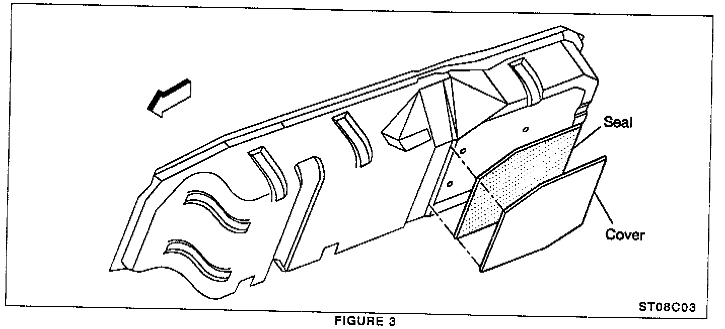 7. Use a "pre-sol" solution (DuPont 3919 or equivalent) to remove any dirt and grime from the fuel tank area where the seal and cover will be applied (Figure 3). The cleaning solution used must not leave any oily residue or film on the surface of the tank.