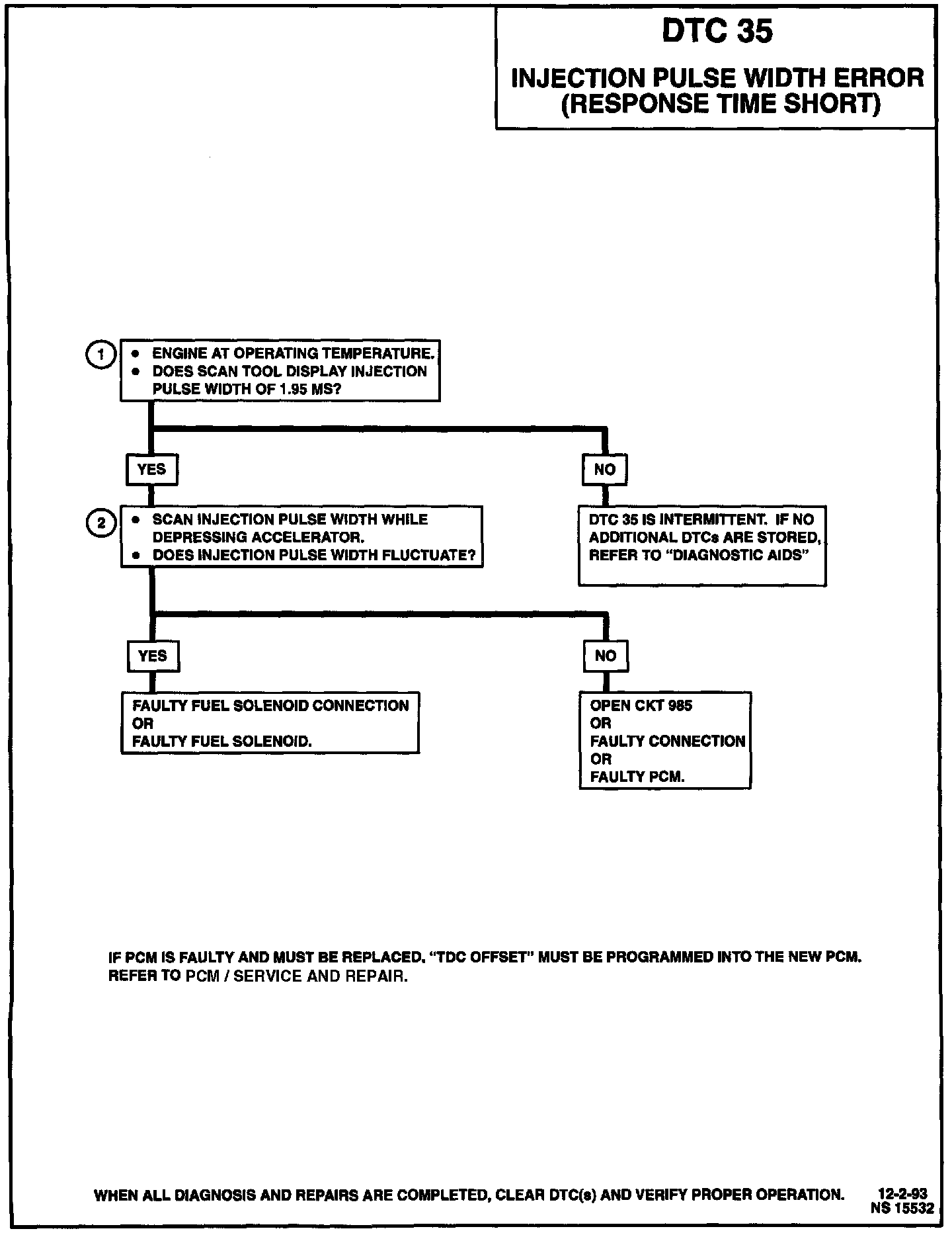 The injection pulse width will fluctuate slightly when throttle is depressed. If DTC 35 is set with any other DTC's, diagnose them first.