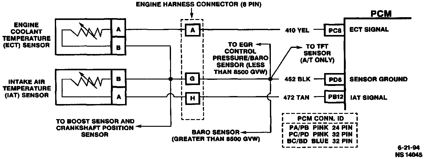 Tech I scan tool displays intake air temperature in degree centigrade. A faulty connection or an open in CKTs 452 and 472 will result in a DTC 47.