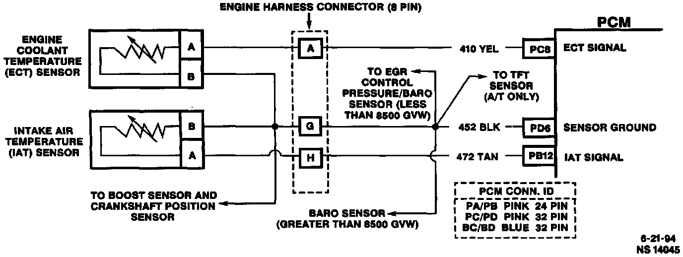 Tech I scan tool displays intake air temperature in degrees centigrade. A faulty connection or an open in CKTs 472 and 452 will result in a DTC 14.
