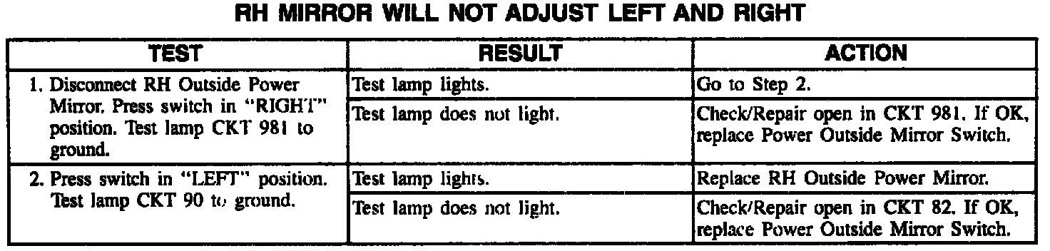 RH Power Mirror Does Not Operate Left/Right