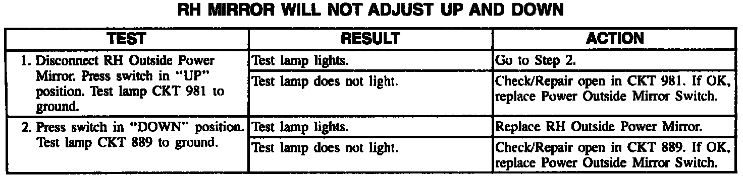 RH Power Mirror Does Not Operate Up/Down