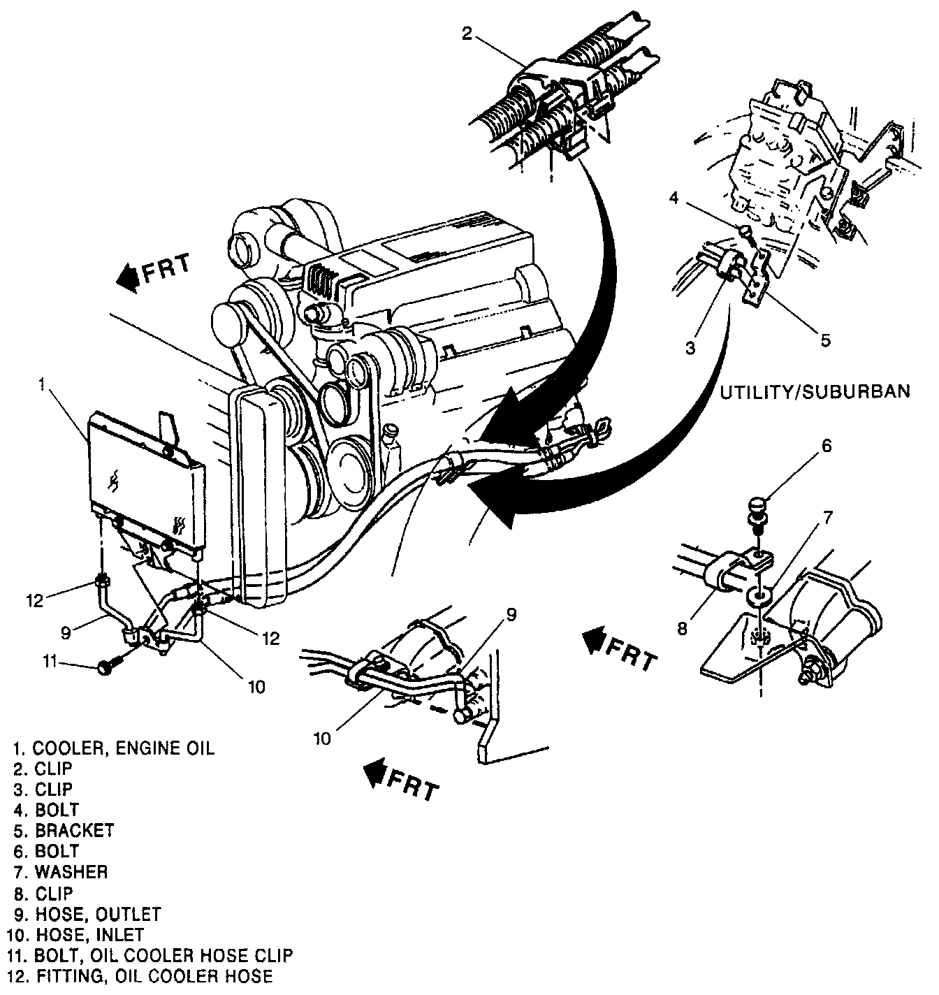ENGINE OIL COOLER LINE REPLACEMENTThe optional oil cooler is either an integral pan of the radiator or a separate unit placed in front of the radiator. Cooler lines and hoses are serviceable.