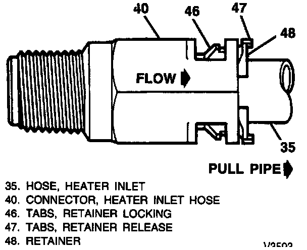 7. Pull retainer and hose from heater inlet connector.