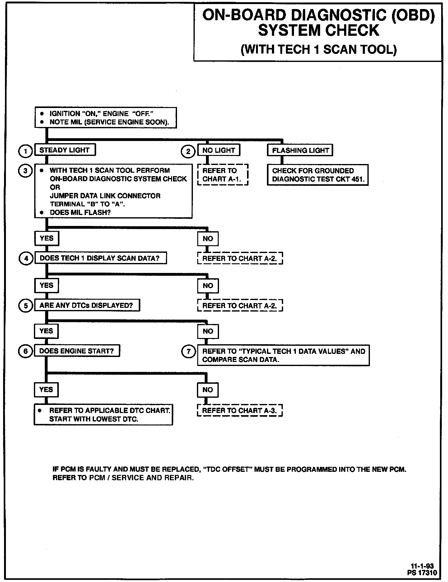The "On-Board Diagnostic (OBD) System Check" is an organized approach to identifying a problem created by a control module system malfunction. It must be the starting point for any driveability complaint diagnosis this will direct the service technician to the next logical step in diagnosing the complaint. Understanding the chart and using it properly will reduce diagnostic time and prevent the unnecessary replacement of good parts.