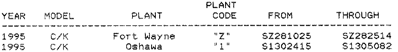 VEHICLES INVOLVEDInvolved are certain 1995 C/K pickup built within the VIN breakpoints as shown.