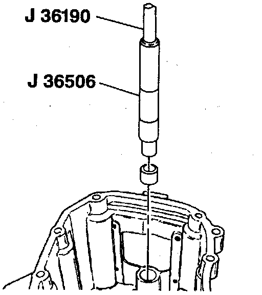 1. Rear housing shift shaft bearing using J 36506 and J 36190.