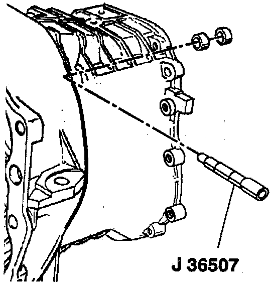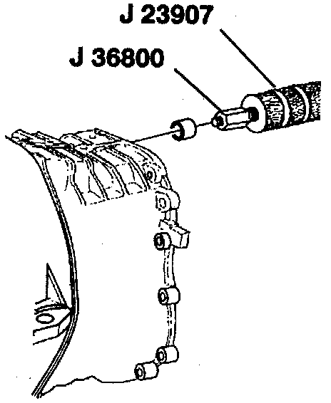 2. Shift rail front housing bushing using J 36800 and J 23907.