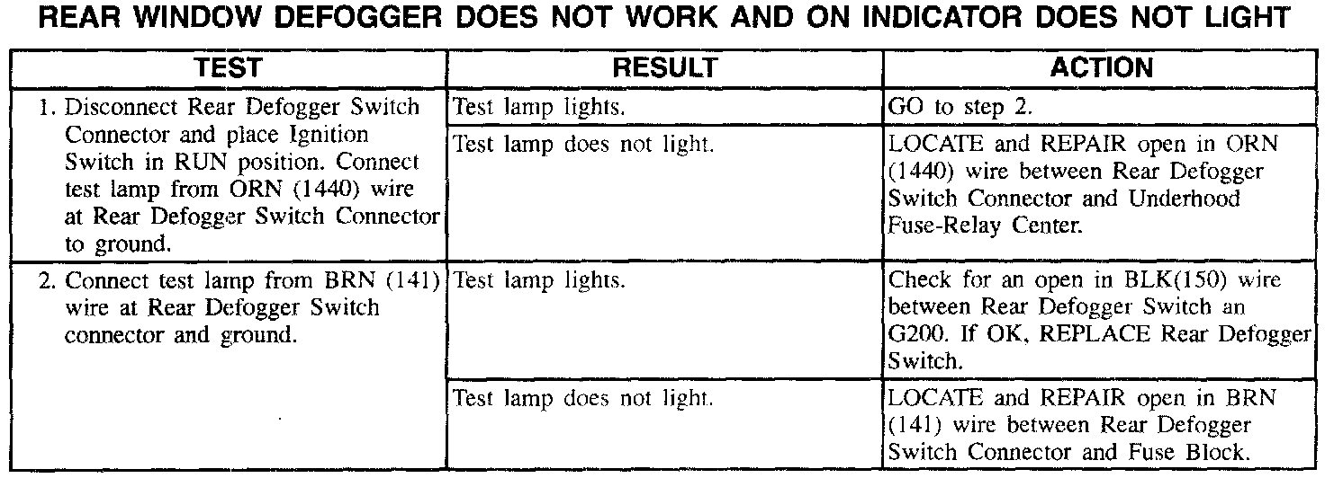 Rear Window Defogger Does Not Work And On Indicator Does Not Light: