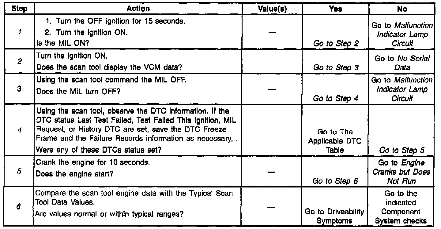 6. Comparison of an actual control system data with the Typical Scan Tool Data Values is a quick check to determine if any parameter is not within limits. A base engine problem (i.e., advanced cam timing may substantially alter sensor values).