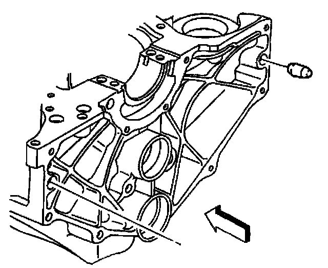 7. Remove the engine block right rear oil gallery plug.