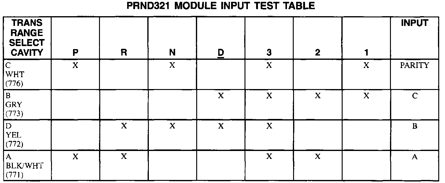 PRND321 Module Input Test Table
