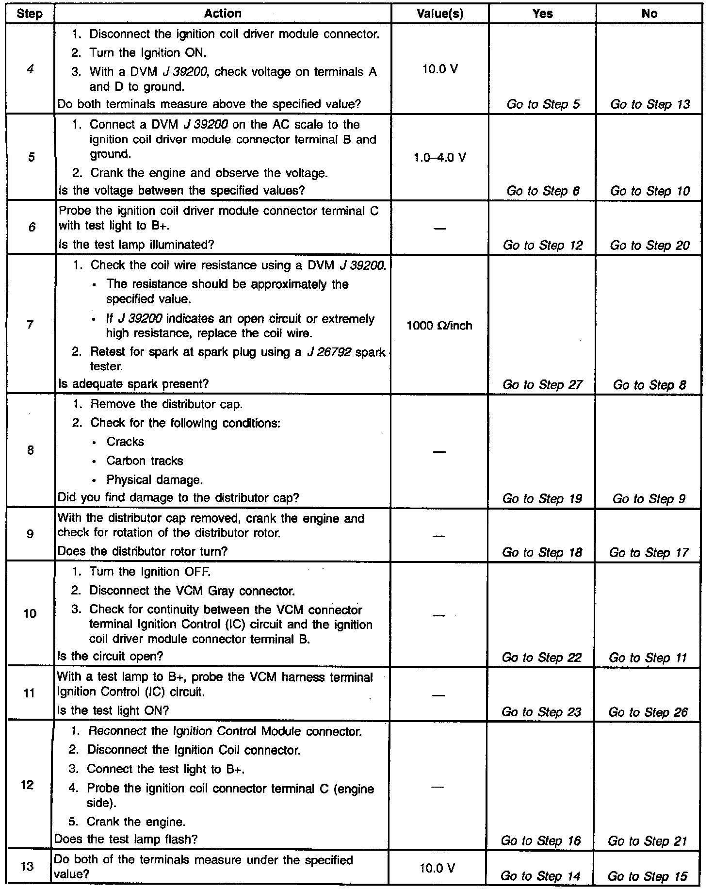 4. This check begins to determine if the VCM is providing a signal to the ignition coil driver module or not. If the VCM is not providing a signal to the ignition coil driver module, the problem exists between the distributor and VCM.
