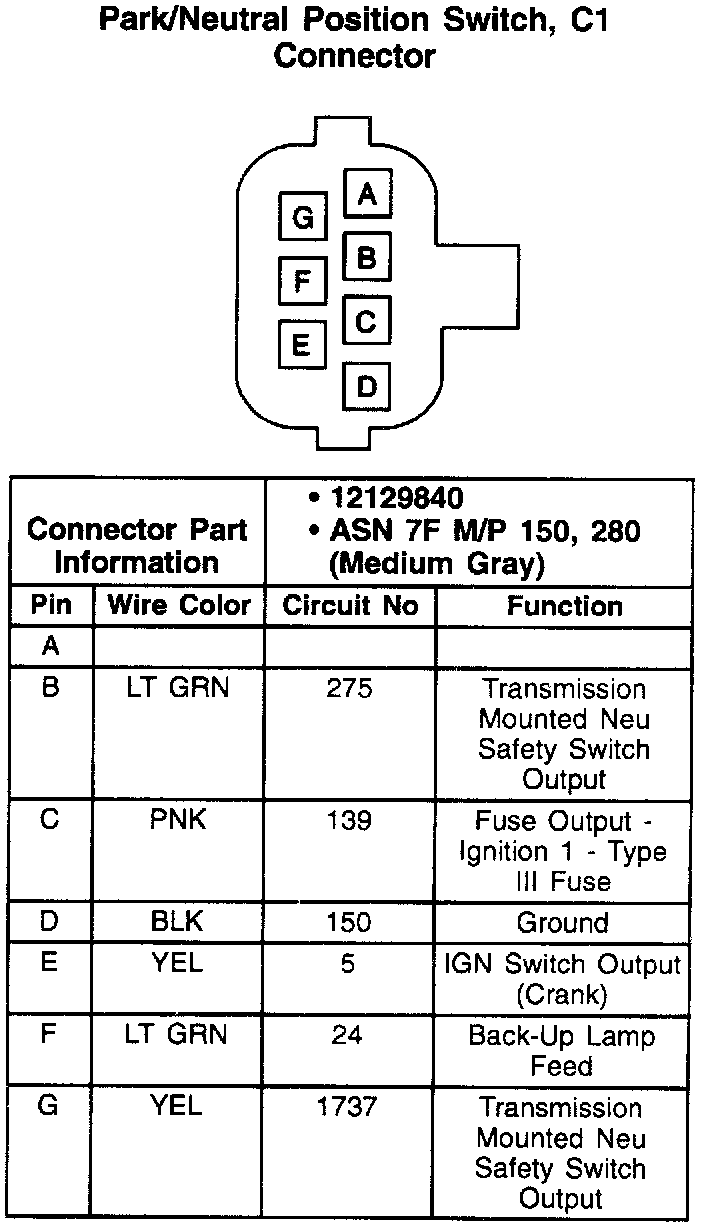 Park/Neutral Position Switch, C1 Connector: