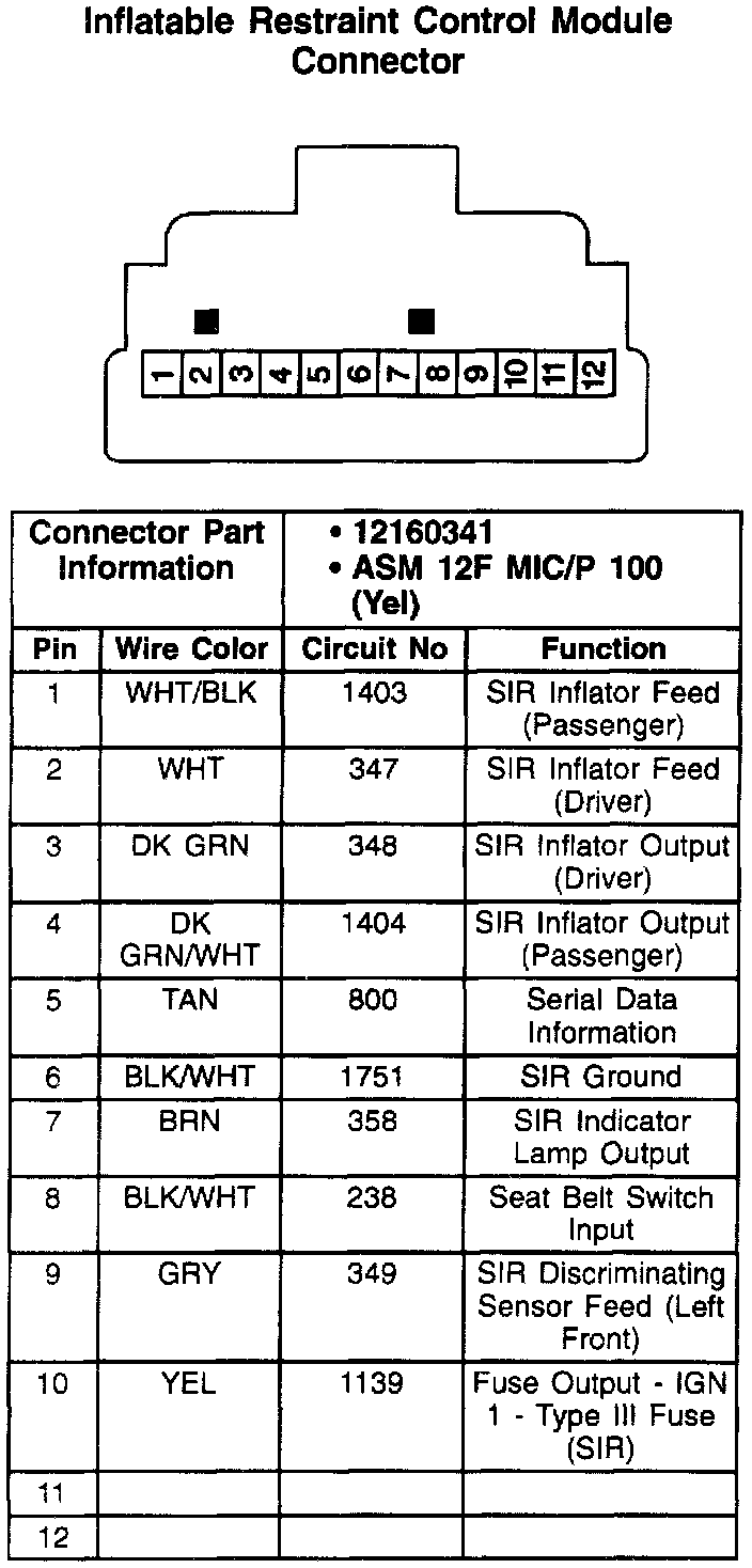 Inflatable Restraint Control Module Connector: