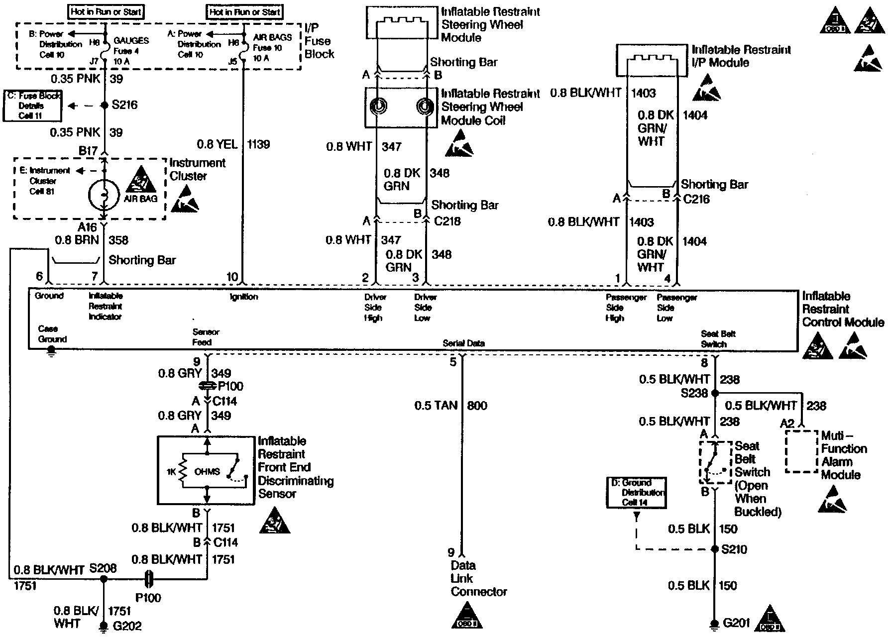 4. When you have found all circuitry outside the inflatable restraint control module to operate properly, as indicated by the appropriate diagnostic table, then and only then should the inflatable restraint control module be replaced.