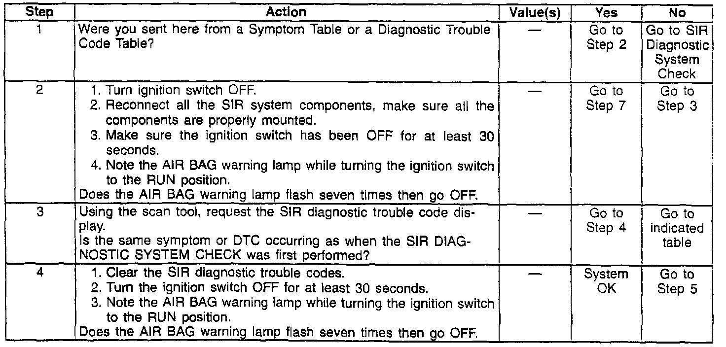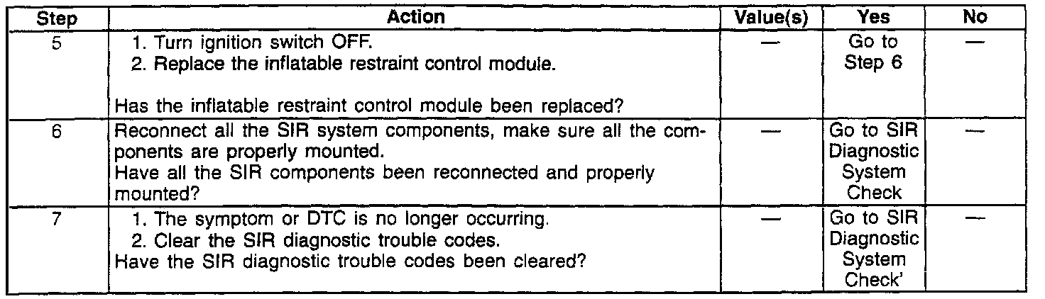 3. This test checks for a malfunction introduced into the SIR system during the diagnostic process. It is extremely unlikely that a malfunctioning inflatable restraint control module would cause a new malfunction to occur during the diagnostic process.