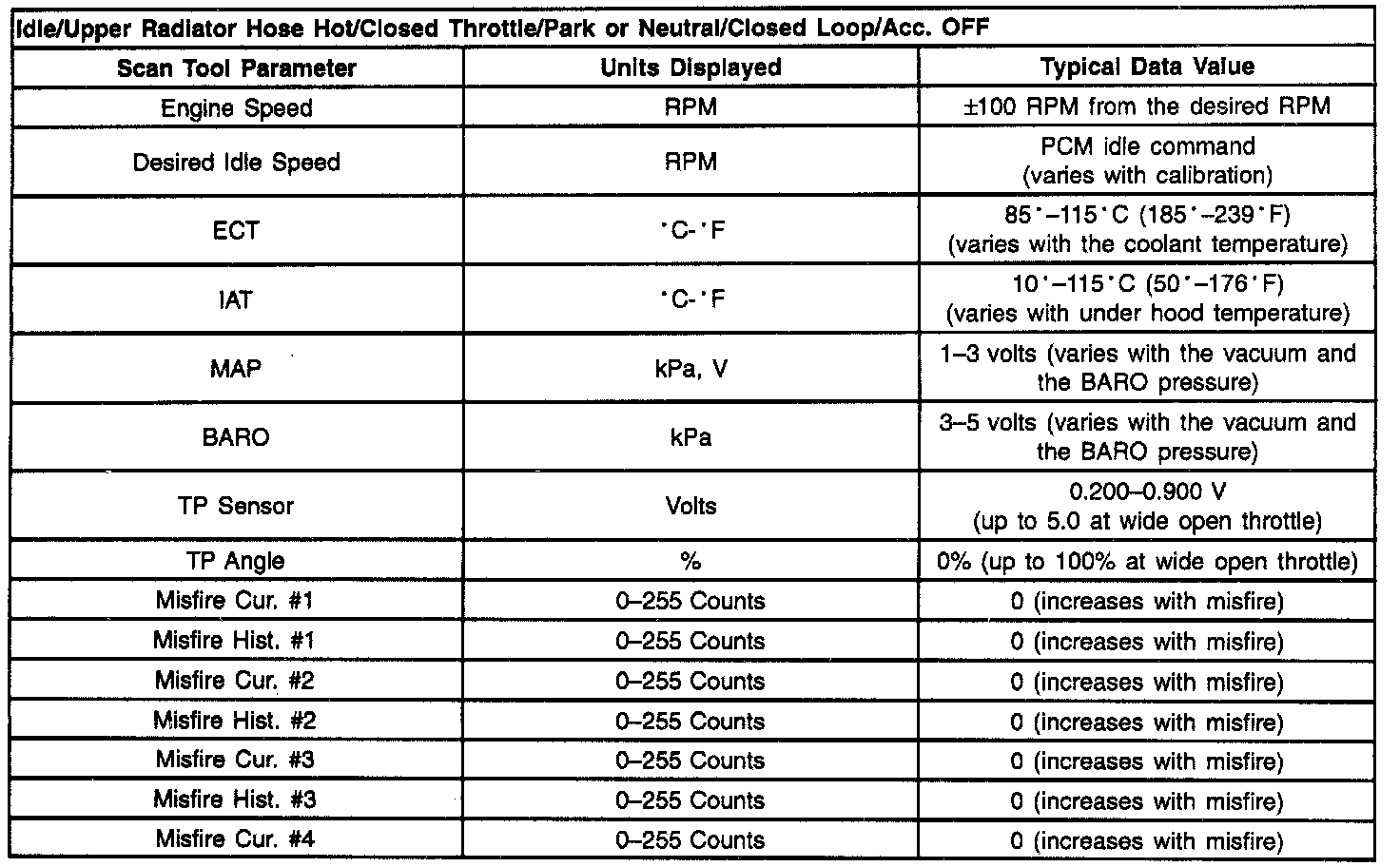 Scan Tool Data Specific Engine, Misfire Data (1 Of 2):