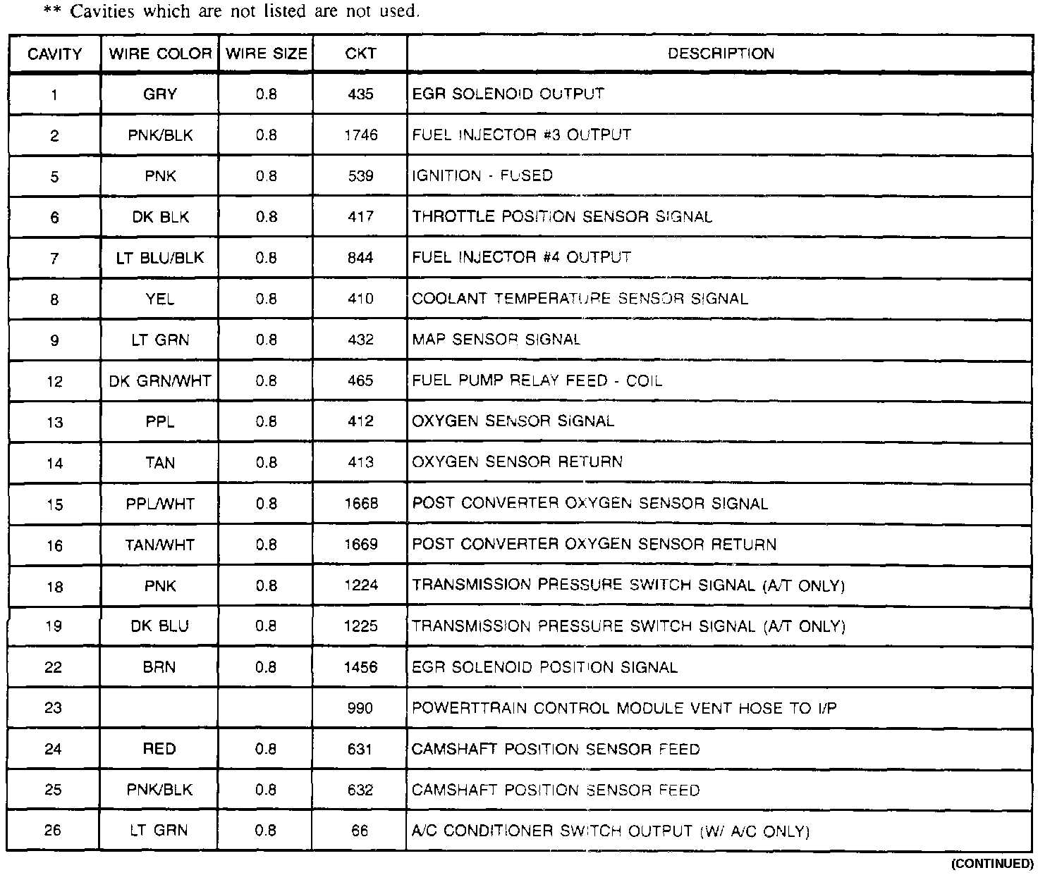 Powertrain Control Module Connector: C1 (Part 2 Of 2):